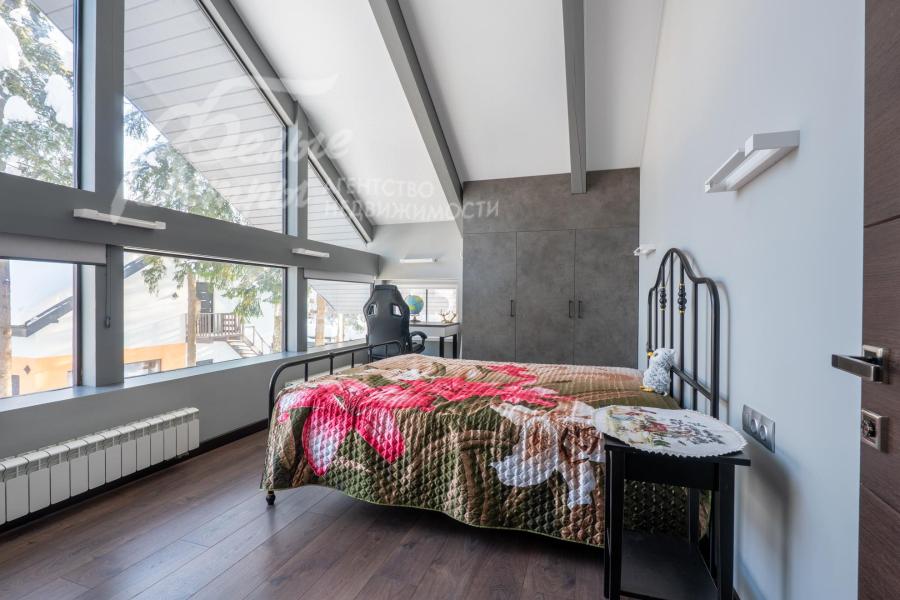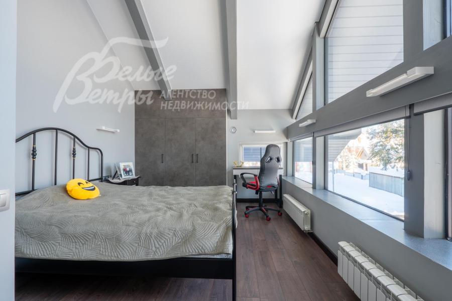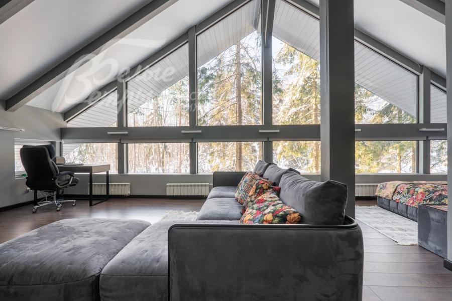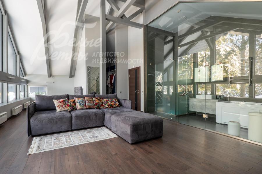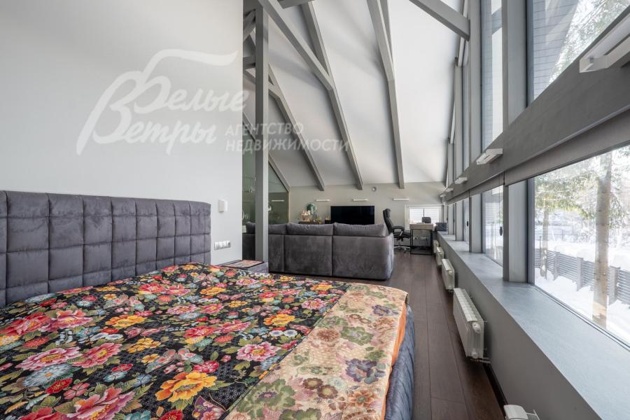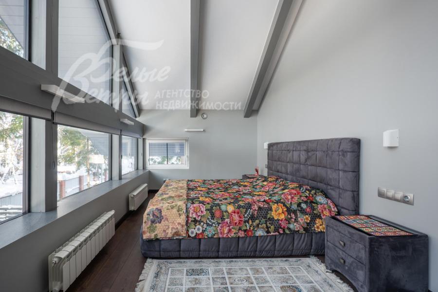 Современный энергоэффективный дом в стиле фахверк — меблированный и готовый к заселению. Строительство и отделка выполнены на высоком уровне: в доме – панорамные окна, комбинированный конструктив, богатая инженерная начинка, приточно-вытяжная вентиляция. В планировке — пять спален, две из них расположены на первом этаже. На втором этаже находится эффектный мастер‑блок площадью 45,5 кв.м с высокими потолками, панорамным остеклением и уютной зоной отдыха с диваном. На участке также построен вспомогательный дом с гаражом и квартирой для персонала. Дополнительно оборудован навес, рассчитанный на два автомобиля. Дом стоит на живописном лесном участке с вековыми елями и дубами в коттеджном посёлке с собственным благоустроенным прудом рядом с инфраструктурой Новой Москвы.