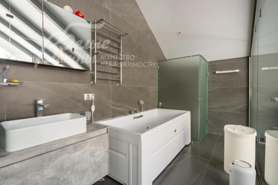 Мебель, оборудование: дом меблирован. На кухне – встроенный кухонный гарнитур фирмы Кухонный Двор с островом, встроенная бытовая техника Neff и Bosch, а также измельчитель отходов Bone Crusher, фильтр питьевой воды с обратным осмосом, встроенные холодильник и морозильник Liebherr. В комнатах установлена корпусная мебель, мягкая мебель Estetica. Интерьер дополняют рулонные шторы на втором этаже, многоуровневая система подсветки. В санузлах – сантехника Hansgrohe, Grohe, Omoikiri